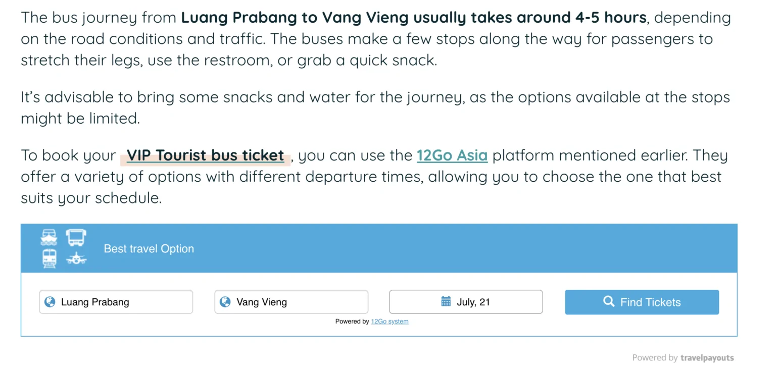 We found a lot of success with articles such as our guide to the Bangkok–Chiang Mai sleeper train, earning through the 12Go partner program. Readers appreciated our tips on avoiding the mistakes we had made in our travels. The article has since been earning us a steady income stream from ticket sales.